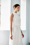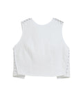 A completely unique piece, the quilted Emma Gilet can be worn layered over a top or on its own. The sides and shoulders are buttoned while the open back is tied. Cut from the finest sustainable fabrics imported from Italy. Made in New York.