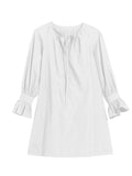A long-sleeve dress softened with circular flounce cuffs and tied neckline. Cut from the finest sustainable fabrics imported from Italy. Made in New York.
