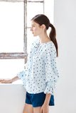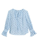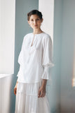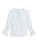 A long-sleeve blouse softened with flounce cuffs and tied neckline. Cut from the finest sustainable fabrics imported from Italy. Made in New York.