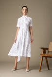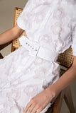 Your favorite button-up style in a lined mid-length dress with our fil coupé cotton and matching sash. A matching belt is available for purchase by emailing sales@daniellefichera.com.