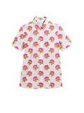The warmer weather version of our timeless button-up with short, cuffed sleeves. Available in our custom fil coupé fabric for the grey+yellow or white + pink colors options or in our white + green print. Cut from the finest, sustainable cotton imported from Italy. Made In New York.